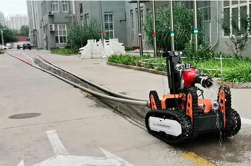 O robô é projetado com controle remoto sem fio. A unidade de controle remoto e o monitor são integrados ou separados. Ele pode exibir informações em tempo real, como status da bateria, condições internas, status do robô, temperatura e umidade no local e informações de alarme sobre concentrações de gases tóxicos e nocivos, controlando o movimento do robô, como para frente, para trás e virar. Possui capacidades de reconhecimento remoto. O corpo é equipado com três tipos de dispositivos de percepção ambiental e equipamentos de controle de plataforma em nuvem, incluindo uma plataforma em nuvem de elevação e rotação, câmeras de alta definição, câmeras de imagem térmica e sensores de gás. Ele também pode ser conectado a módulos de alarme sonoros e luminosos para alertar bombeiros ou o público, evitando efetivamente o perigo. Após obter efetivamente as informações da fonte de incêndio por meio de reconhecimento remoto, o robô é equipado com um motor de alta potência que pode ajudar os bombeiros a arrastar sacos de água de incêndio para a área perigosa da fonte de incêndio para extinção e pode transportar vários tipos domésticos e estrangeiros de sacos de água de incêndio e pode controlar remotamente a liberação de água ou espuma. Com base no módulo de captação e no módulo de alto-falante equipados, ele capta os sons do ambiente no local. Mesmo que os bombeiros não estejam perto do local do incêndio, eles podem ouvir os gritos de ajuda das pessoas no local do resgate por meio do módulo de alto-falante e ter uma conversa ao vivo com as pessoas no local.